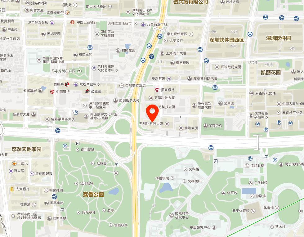 周边信息 酒店 IU酒店(深圳大学南山科技园店)、兰赫美特酒店、如家精选酒店(深圳南山科技园店)、深圳合生利酒店式精品公寓、高新富悦酒店、深圳INNO楹诺酒店(南山科技园店)、莫泰酒店(南海大道店)、禾尖S酒店(深圳大学店)、深圳圣淘沙酒店(桃园店)、伯爵精品酒店、深圳圣淘沙酒店(桃园店)、7天酒店(深圳科技园地铁站万象天地店)、桔子水晶深圳南山新豪方酒店、城市便捷酒店(马家龙店)、格林联盟酒店(南头古城马家龙店)、地平线酒店、中惠悠雅酒店(深圳科技园前海桃园地铁站店)。 美食 老碗会·陕西手工面(万利达大厦店)、观海海鲜(南山汉京店)、良厨本味·湖南下饭菜(深南腾讯店)、黄晓猫剁椒大鱼头(科技园汉京店)、清晖小苑·顺德地方菜(汉京店)、原牛道·潮汕海鲜火锅(汉京金融中心店)、辣宴·川湘家常菜(科技园汉京店)、鮨匠龙Omakase、肯德基(麒麟店)、金翠皇宫粤菜·点心·海鲜(翡翠店)、芙蓉楼·健康湘菜(南山常兴店)、同仁四季椰子鸡(南山LOFT店)、汶和记粥底火锅·团建聚餐(南山店)、南蓉海鲜大酒楼·宴会厅(欢乐颂店)、新高记湛江鸡饭店(马家龙店)。 银行 招商银行(科苑支行)、中国工商银行(深圳高新园中区支行)、招商银行(深圳汉京中心支行)、中国银行(艺园路支行)、中国光大银行(深圳高新技术园支行)、中国工商银行(麒麟支行)、中国银行(深大支行)、上海浦东发展银行(深圳高新支行)、浙商银行(深圳南山支行)、中信银行(南山支行)、广发银行(桃园支行)、中国建设银行(南山大道支行)、中国银行(桃园路支行)、北京银行(桃园社区支行)。 部分入驻企业 WESURE公司、深圳积木易搭科技技术有限公司、深圳易民服饰有限公司、松日高科电子(深圳)有限公司、微民保险代理有限公司、深圳市集智塔技术有限公司、深圳市护家科技有限公司、腾云悦智公司、深圳市圳鑫阳酒店有限公司、深圳市乐去科技有限公司、深圳友宝科斯科技有限公司、爱刮刮公司、腾讯科技有限公司、万国半导体元件(深圳)有限公司 ... ...